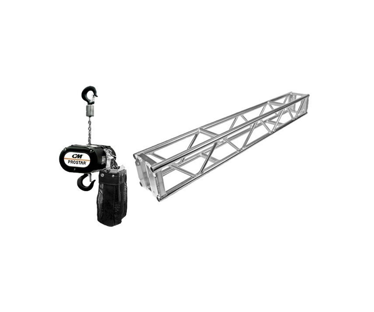 Electric chain hoists, Manual chain hoists and Truss, as well as standard rigging equipment (Shackles, Strops etc.)